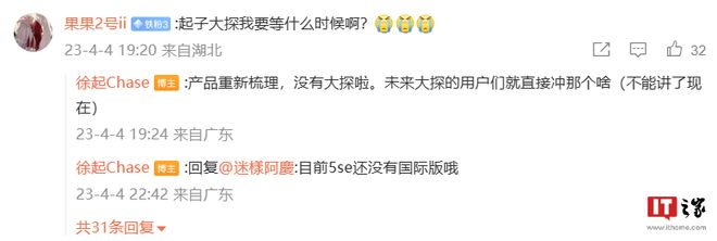 但据IT之家此前报说念,2023 年 4 月,真我 realme 副总裁、寰宇营销总裁、中国区总裁徐起晓谕,realme 产物线重新梳理,将不再有“人人探索版”手机。